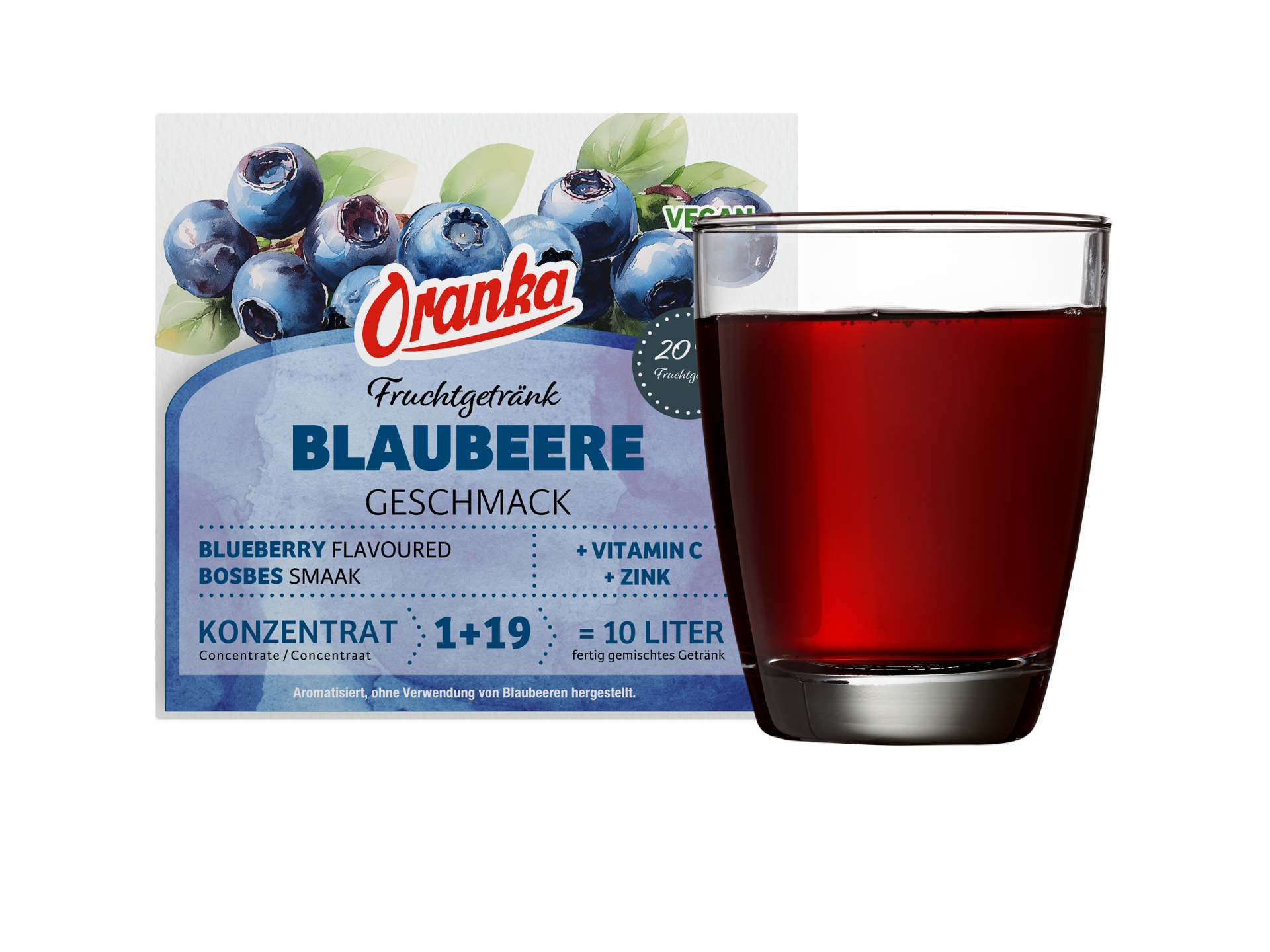 Ein Glas mit 200 ml Fertiggetränk deckt 30 % der Referenzmenge an Zink und 50% der Referenzmenge anVitamin C.