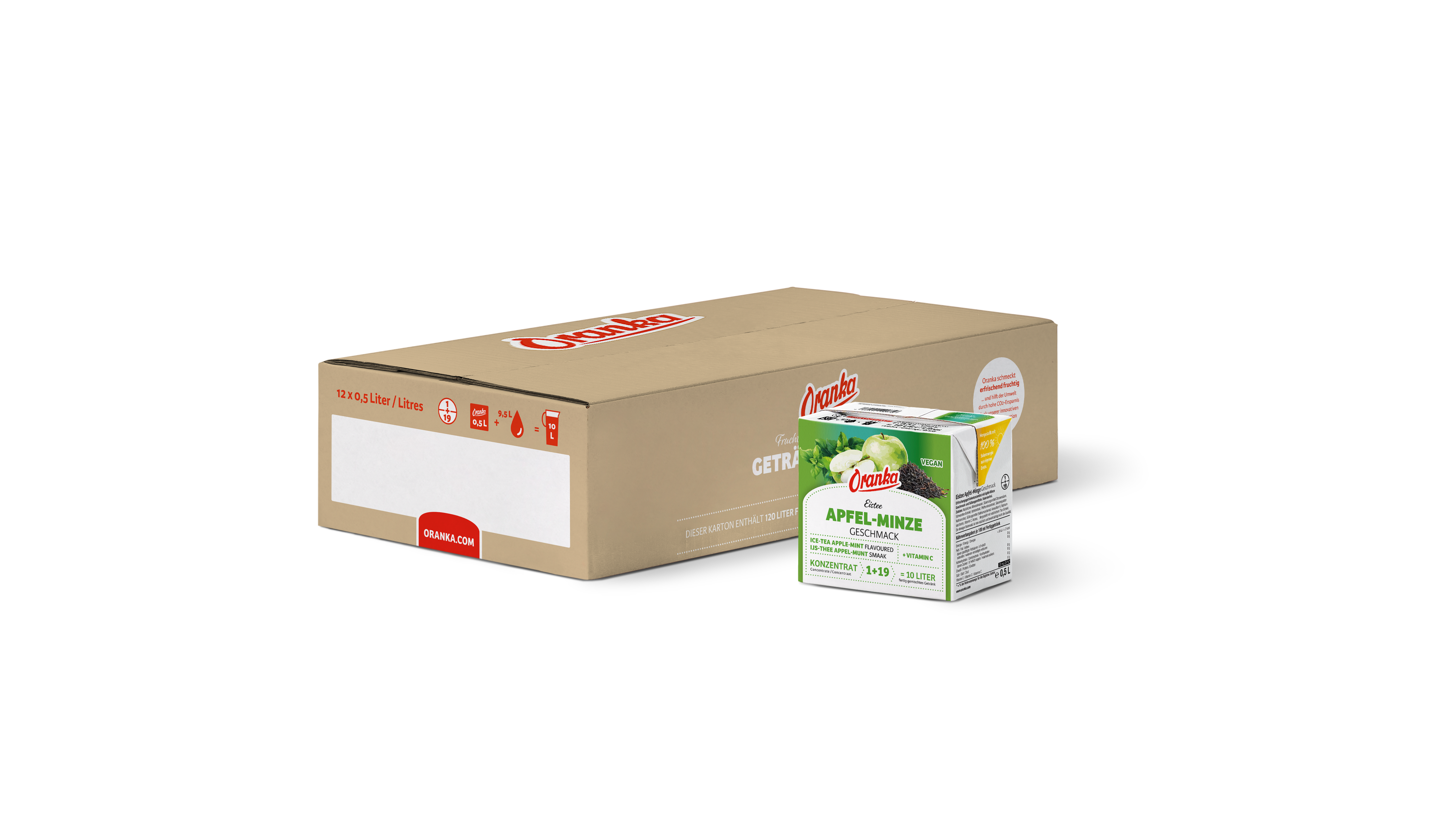 Die prämierten ORANKA Tee-Getränke mit Vitamin C (1+19) sind unsere Empfehlung für eine gesunde Flüssigkeitszufuhr, da diese aufgrund der niedrigen Osmolarität schnell vom Körper aufgenommen werden und keinen zugesetzten Zucker enthalten. ORANKA Eis-Tee und Tee-Getränke sind zu jeder Jahreszeit eine willkommene Erfrischung. Schon 200 ml Fertiggetränk decken 50 % der empfohlenen Referenzmenge an Vitamin C.